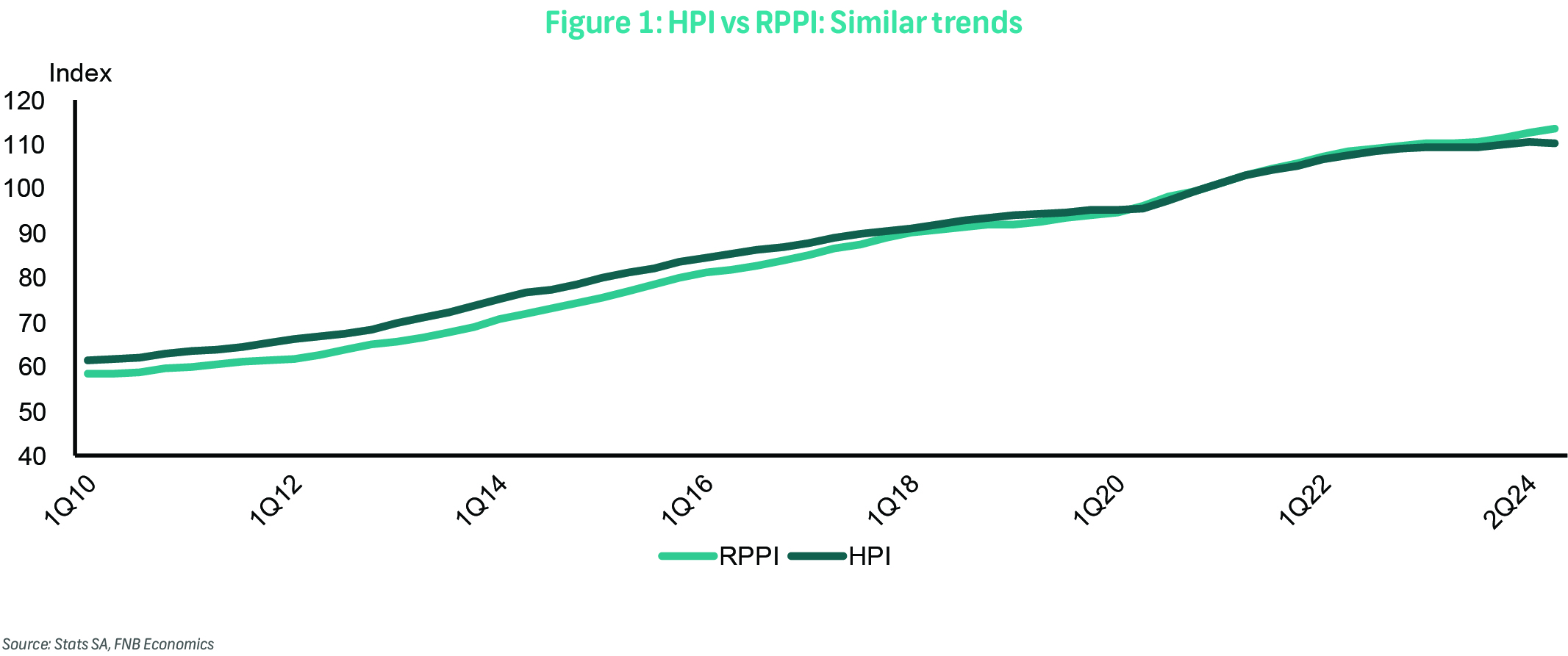 While both the RPPI and FNB HPI provide valuable insights into the domestic housing market, their distinct methodologies, data sources, and scopes offer different perspectives. Figures 1 and 2 show that while they may produce slightly different results, they generally align in terms of overall trends. That said, it is crucial to consider the nuances and limitations of each index when interpreting the data, to gain a more comprehensive understanding of the South African housing market.