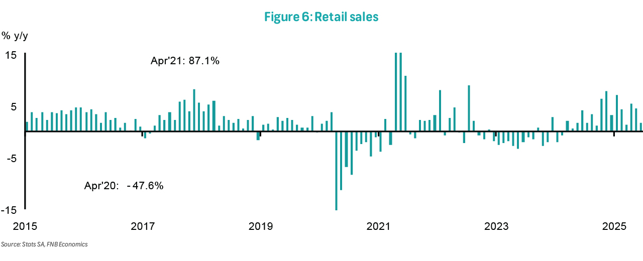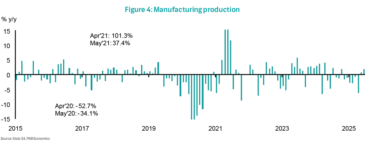 Manufacturing output (not seasonally adjusted) expanded by 1.9% y/y in June, after increasing by 0.7% (previously 0.5%) in May. Prior to May and June, manufacturing recorded an average monthly annual decline of 2.6% between November 2024 and April 2025, reflecting subdued domestic demand. Seasonally adjusted manufacturing production was flat (0% m/m) in June, following 2.2% growth in May. The full 2Q25 manufacturing data suggests that the sector contributed positively to GDP growth, based on 1.6% quarterly growth.