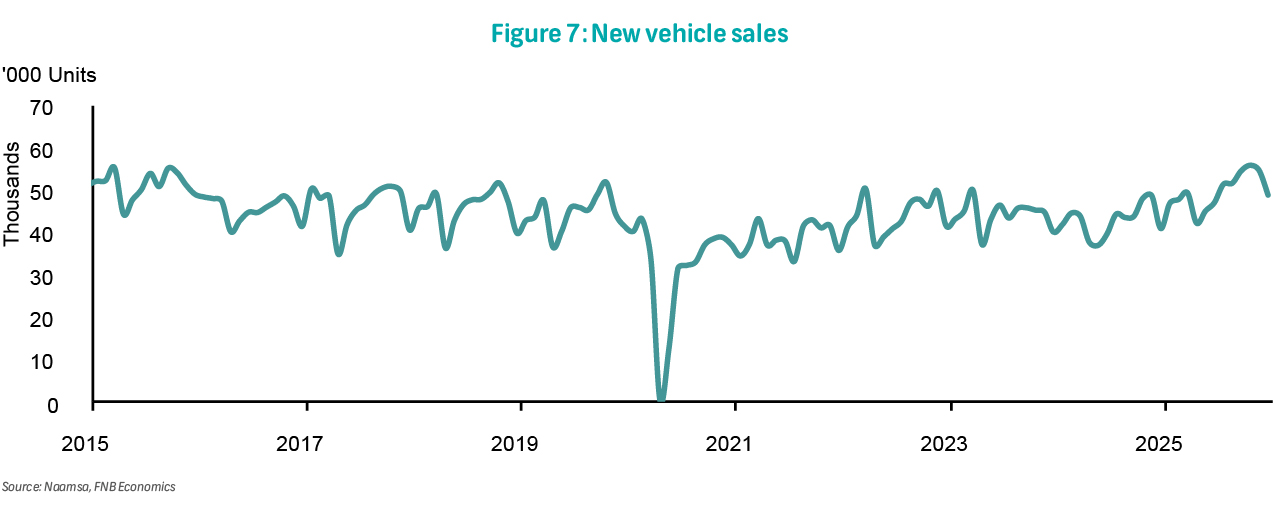 Inflation remains benign, and broader expectations for inflation are becoming more consistent with the new target. While further declines are anticipated as households experience lower inflation for a sustained period, sticky administered price inflation remains a risk to the speed of adjustment. The SARB has revised its inflation forecast marginally, and it's slightly higher than ours for 2026 (Figure 2). This is because they expect higher oil and fuel prices; stickier food inflation; and higher electricity inflation. The SARB views risks as balanced and if their outlook proves correct, the MPC should be able to deliver the easing shown by the QPM repo rate path.