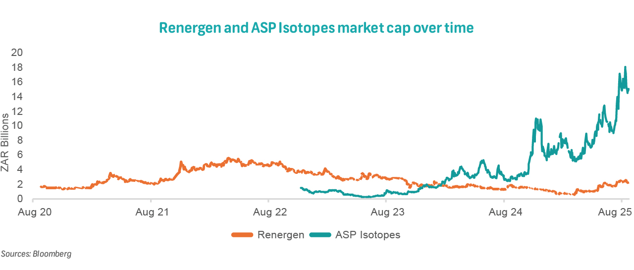 Both ASP Isotopes and Renergen are expected to remain loss making over the medium term as ASPI moves towards commercialising its isotopes business and Renergen scales Virginia Phase 1 production. We did not consider in our valuation the outlay or eventual revenue generation from Renergen's Phase 2 project but note that it provides meaningful optionality for the combined entity longer term.