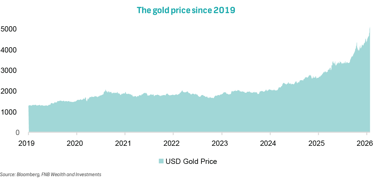 The gold price recently reached another all-time high, and over the last few days has sold off substantially. Both the move above $5 000 as well as recent volatility has prompted investors to reassess their current exposure. Those already invested are weighing whether to sell or hold, while those without exposure are questioning if it's worth starting a position now.