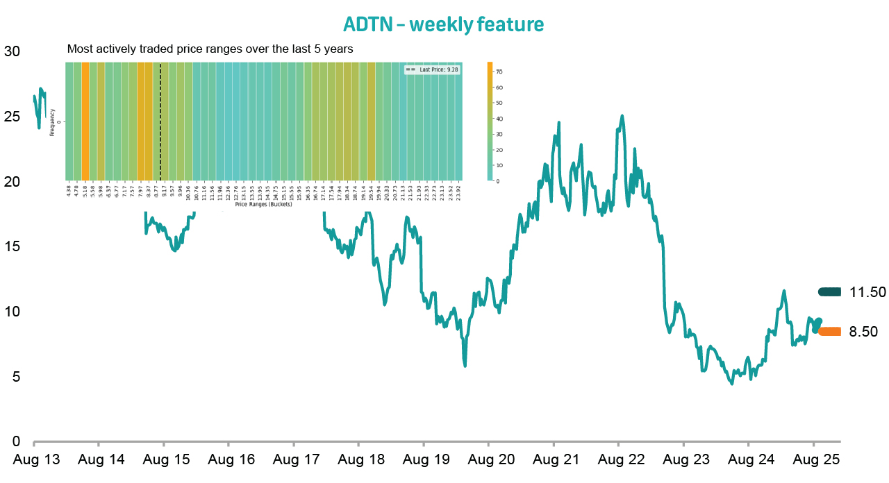 Technically, the stock's ability to hold firm around historically active trading ranges, while maintaining support near its long-term average, presents a promising investment opportunity for the stock (see the insert on the main chart). The heatmap highlights that the share price has spent a considerable amount of time consolidating across well-defined ranges. The combination of strong support and relatively low valuation risk makes the current level attractive for accumulation, supporting the bullish stance.