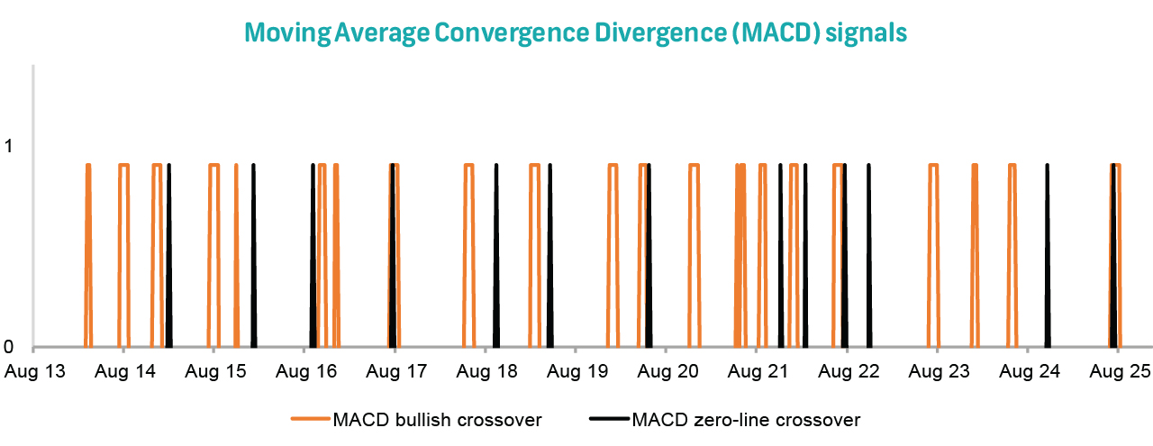 The start of upside price momentum per the Moving Average Convergence Divergence (MACD) histogram, as well as the sideways trajectory of the on-balance volume (OBV) indicator supports our bullish view.