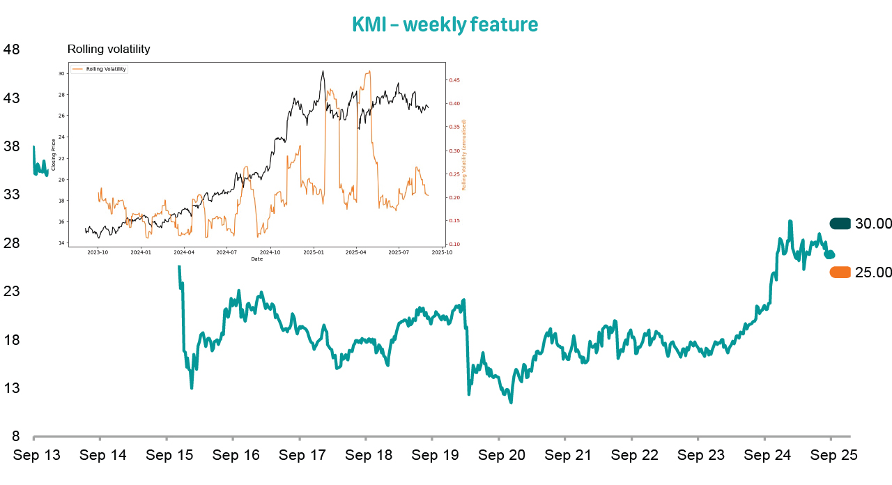 Our bullish outlook is supported by current low volatility, which signals market stability and potential for upward momentum. Additionally, a recent quick rebound above its 200-day moving average highlights strong technical support and renewed investor confidence, reinforcing the case for continued price appreciation.
