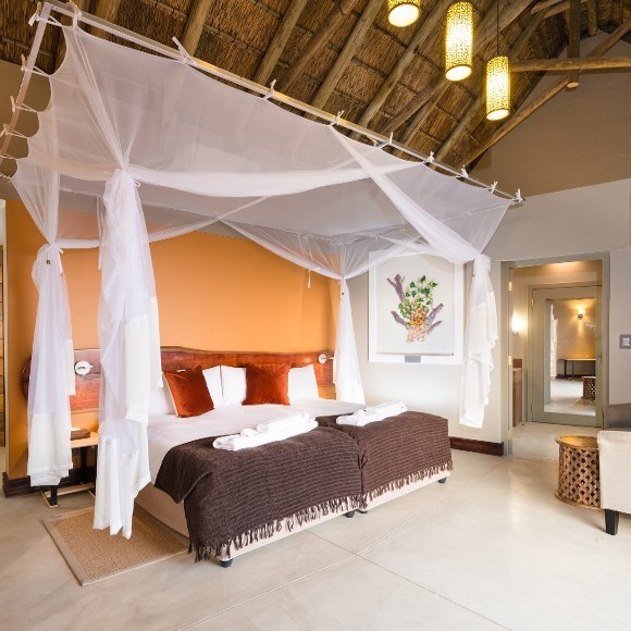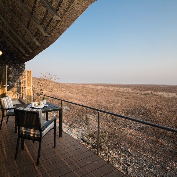 In the middle of northern Namibia’s arid, captivating savannah, bordering the world-famous Etosha National Park, is Safarihoek Lodge. Perched on top of a hill, overlooking the plains below, Safarihoek is a stylish sort of place, and you’ll find cool, thatched chalets all with private decks, a double-storey photography hide, and a swimming pool with 180-degree vistas of the brilliant savannah.