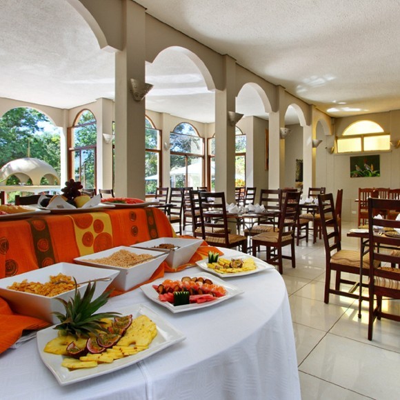 Enjoy a drink and a snack at The Panorama, a unique platform from which to view the magnificent surroundings including the spectacular view of "Mosi- oa-Tunya", The smoke that thunders as the massive spray of the Victoria falls is known locally. The hotel consists of 88 comfortable rooms overlooking either the lush gardens or the swimming pool with air-conditioning, TV, mini safe and tea/coffee making facilities and boasts 2 restaurants, pool bar, swimming pool, barbeque area, children's playground and conference facilities (on request).