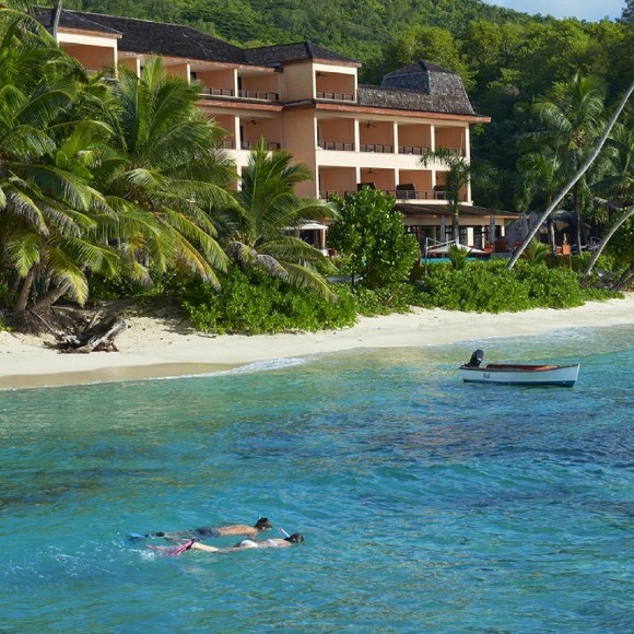 A turquoise mosaic infinity pool mirrors the blue ocean whilst the superb private beach is dotted with huge granite boulders and complemented by the lush tropical foliage of the surrounding mountains. Should you want to keep up your fitness routine while on holiday, the gym is glass-fronted and looks right out to the sea. Snorkelling equipment and kayaks are free of charge for those seeking adventure. If you prefer to relax, the eForea Spa is located on the rocks along the beach so you can have a massage with a view. The Ocean View Bar offers signature cocktails for enjoying as you view the magnificent sunset. Later in the evening, take in a variety of culinary delights at Les Palms restaurant, where both adults and children enjoy a Creole-centric meal while taking in the surrounding view.